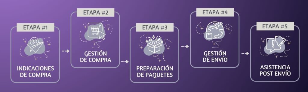 Con toda mi experiencia como asistente de compras en Japón, he diseñado un servicio pensando en ti, dividiendo el proceso en 5 etapas secuenciales. Cada etapa se desarrolla de manera ordenada y paso a paso, adaptándose a las necesidades individuales de cada cliente.